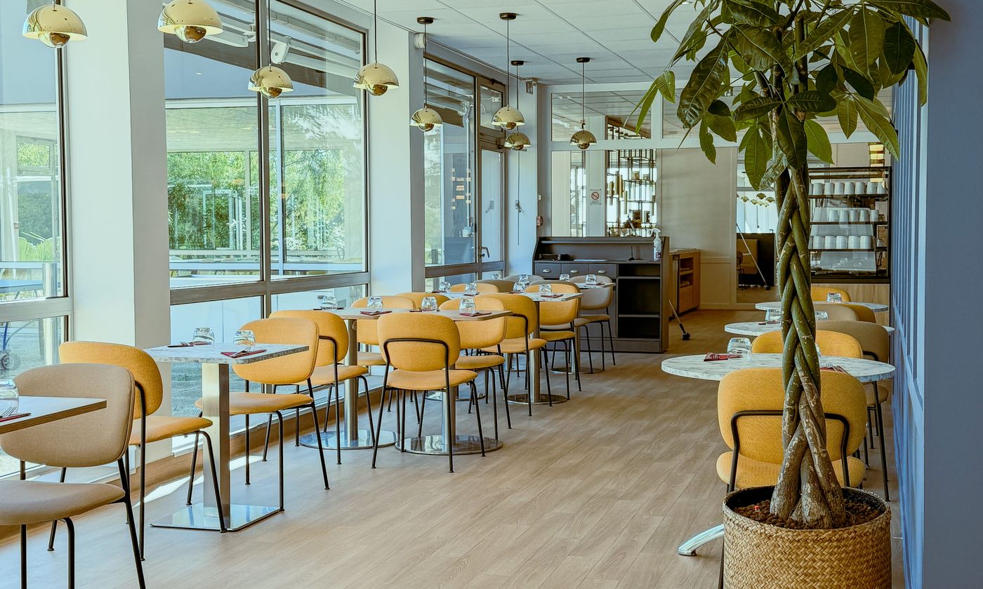 Notre salle de restaurant, baignée de lumière naturelle grâce à de grandes baies vitrées, vous permet de profiter pleinement de la vue verdoyante sur le parc. Cet espace convivial et élégant est le cadre idéal pour un déjeuner en famille, un dîner romantique ou une soirée entre amis.